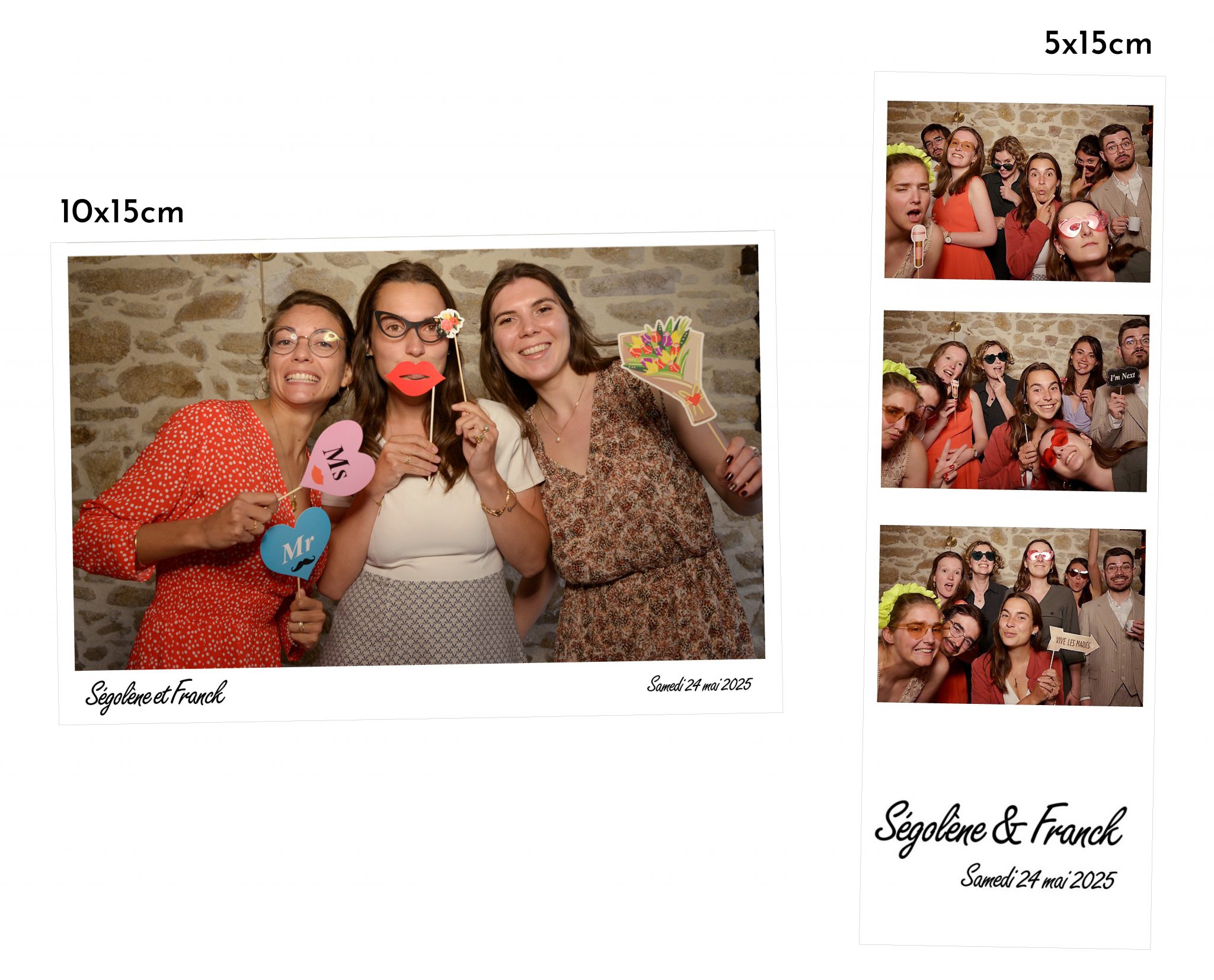 Vous pouvez choisir entre deux versions de la borne, ainsi que le format 5x15cm ou 10x15cm, couleur ou noir et blanc.